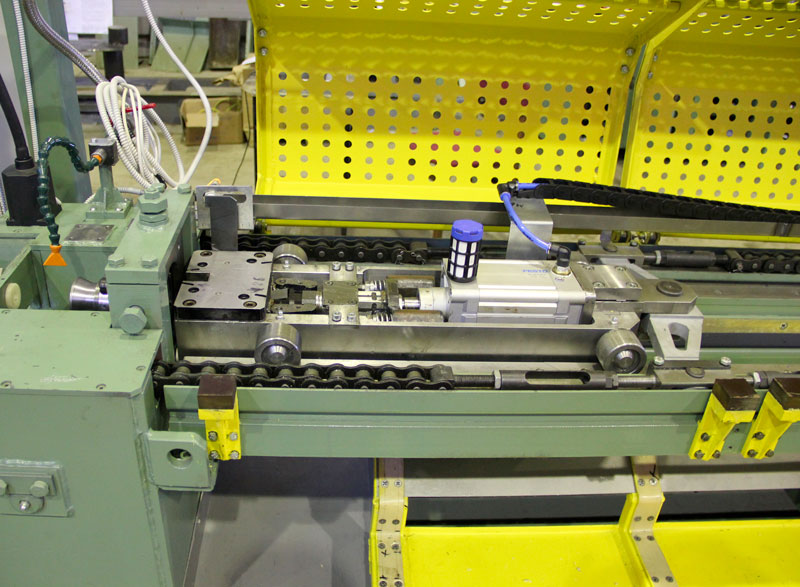 - Тянущая каретка осуществляет захват закованного конца трубы, протягивание трубы через волоку и автоматический сброс протянутой трубы в сборочный карман.